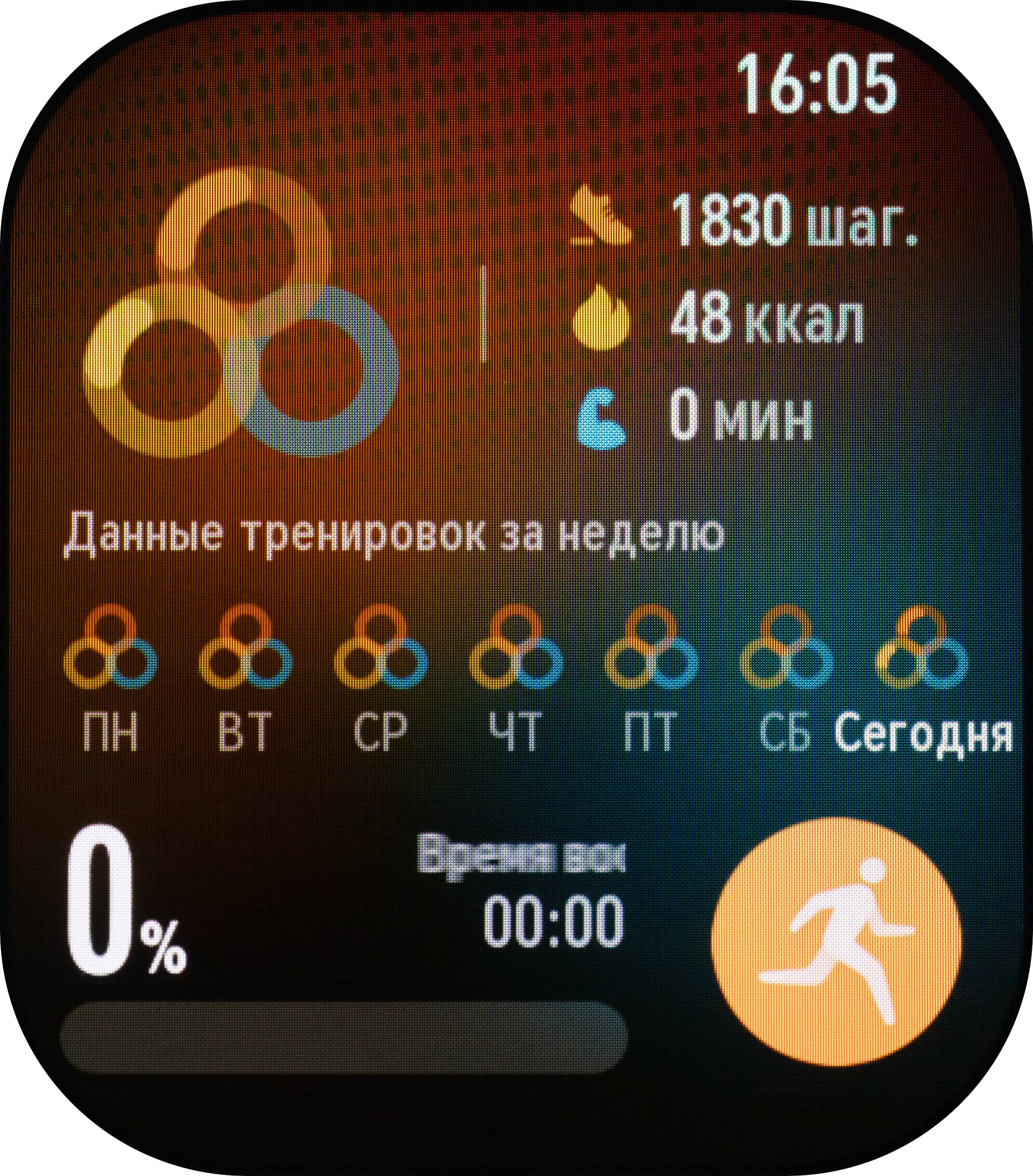 Важная особенность: увеличившийся экран. Вместо 1,75″ мы получили 1,85″, и хотя разрешение осталось прежним (а значит, плотность пикселей упала), такой шаг стоит приветствовать, поскольку любые миллиметры полезной площади в случае с миниатюрным устройством особенно ценны. Кстати, это общая тенденция: другие производители тоже стараются наращивать размер дисплея на часах и браслетах.
