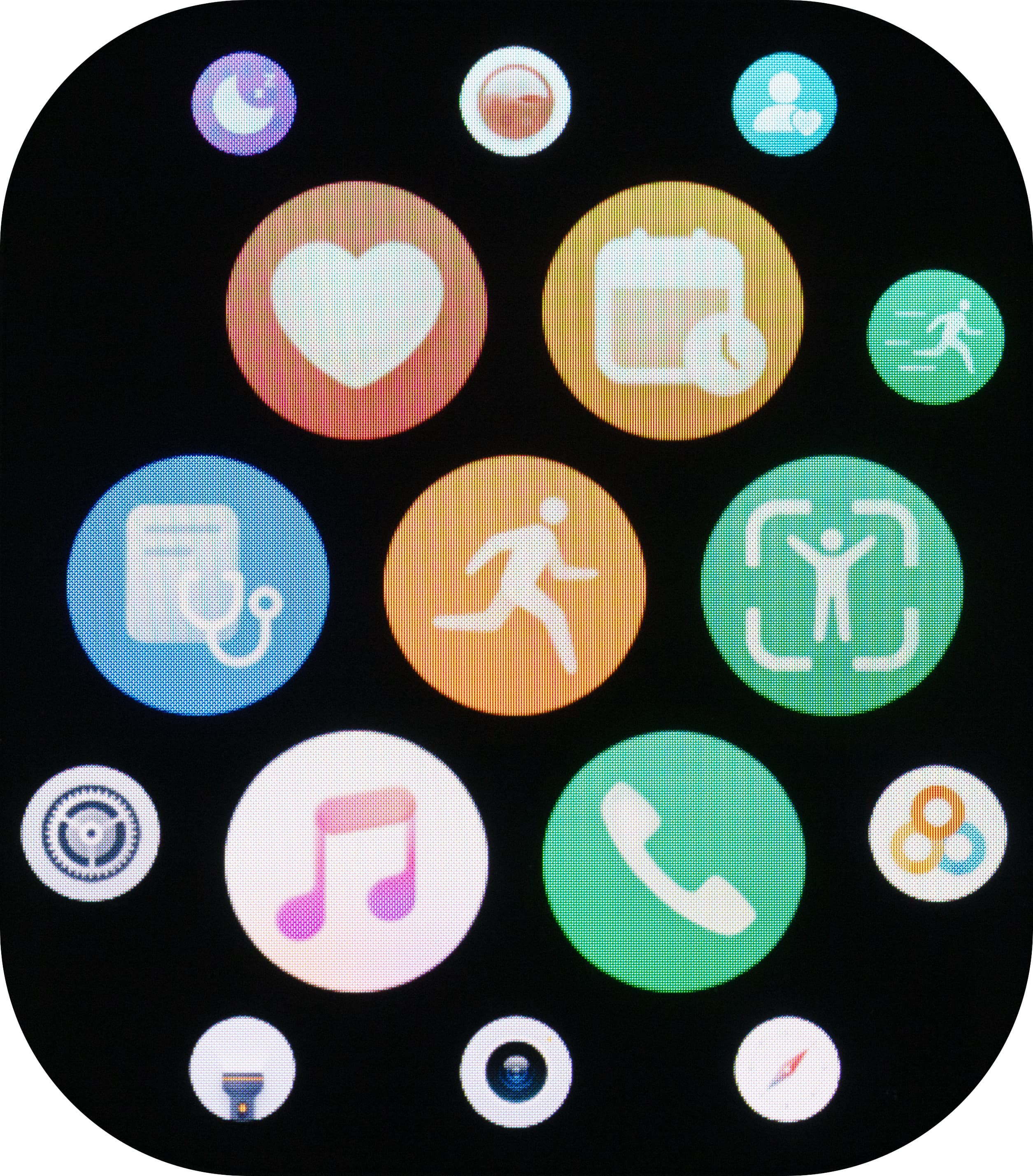 Еще нам понравилась идея с настройкой меню приложений: вы можете сделать отображение иконок как в стиле Apple Watch, так и ровными рядами по три иконки или вовсе списком.