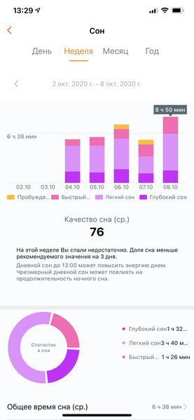 Все данные по тренировкам собираются в приложение Huawei Health и там же анализируются по целому ряду аспектов, в том числе и в динамике — по дням, неделям и месяцам. То же самое касается сна, пульса и стресса.