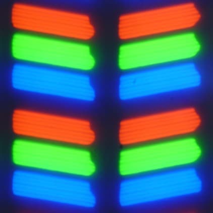 В данном смартфоне используется матрица типа IPS. Микрофотографии демонстрируют типичную для IPS структуру субпикселей: