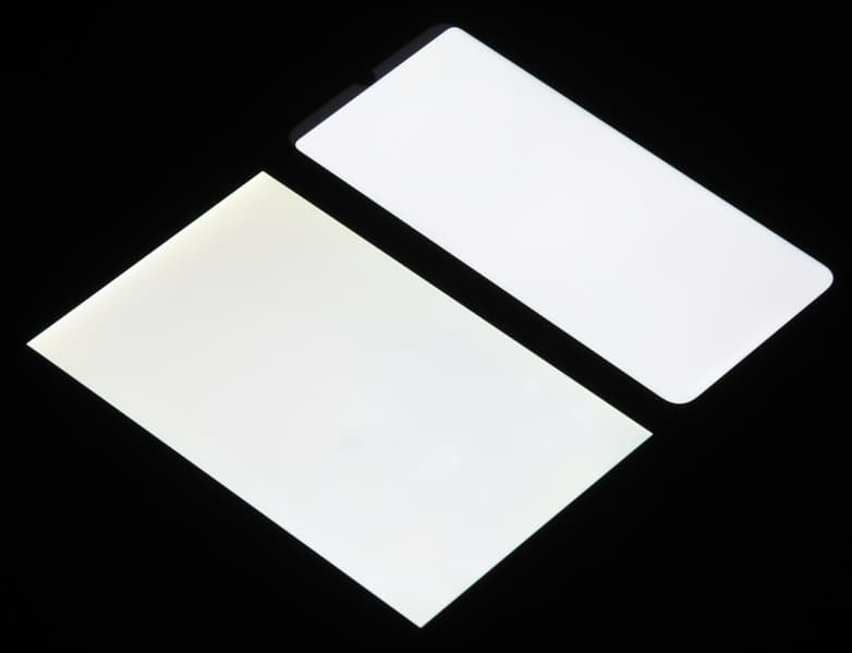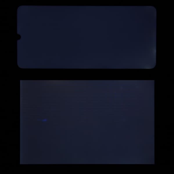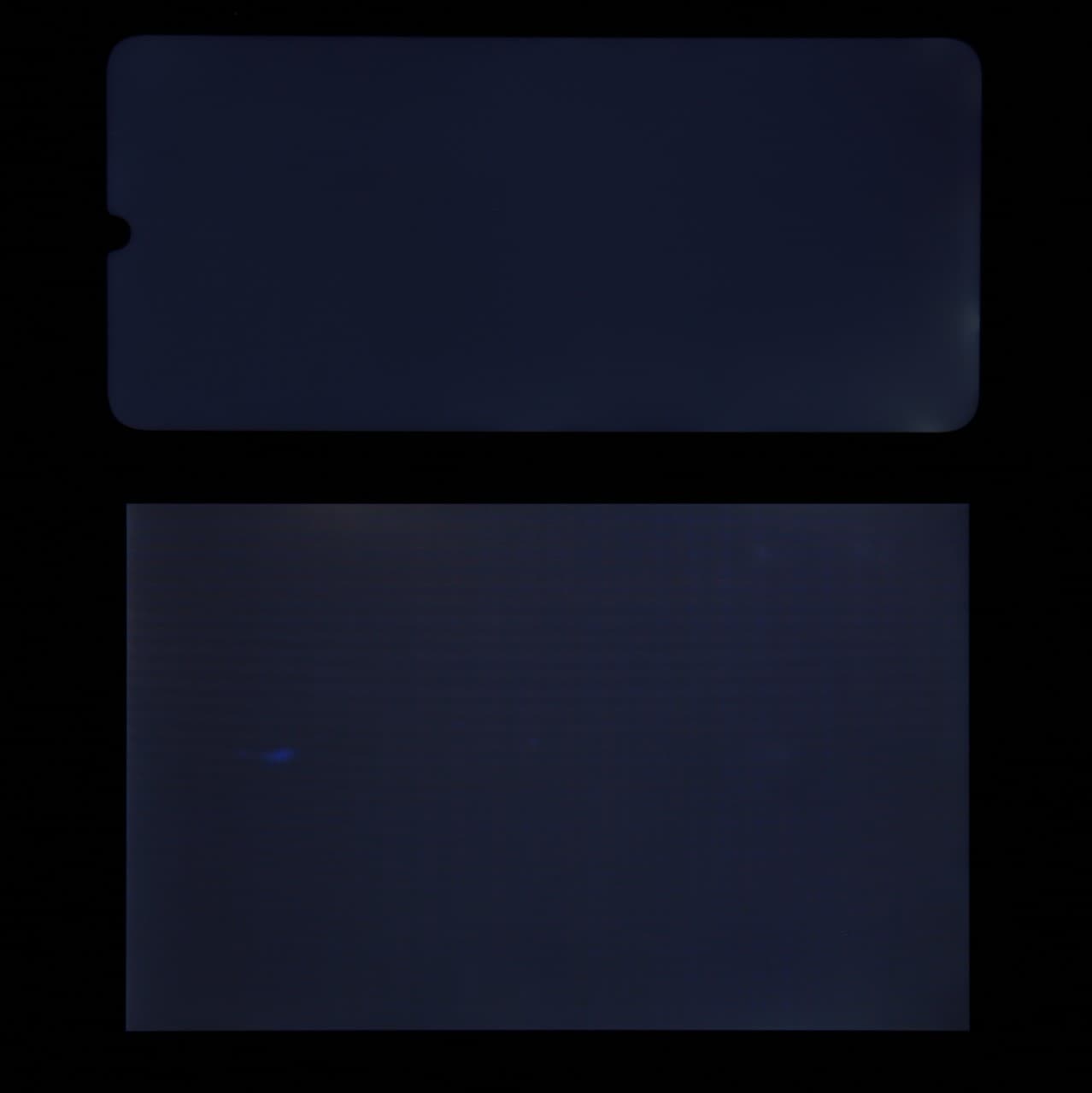 При перпендикулярном взгляде равномерность черного поля средняя (для наглядности яркость подсветки на смартфоне установлена на максимум):