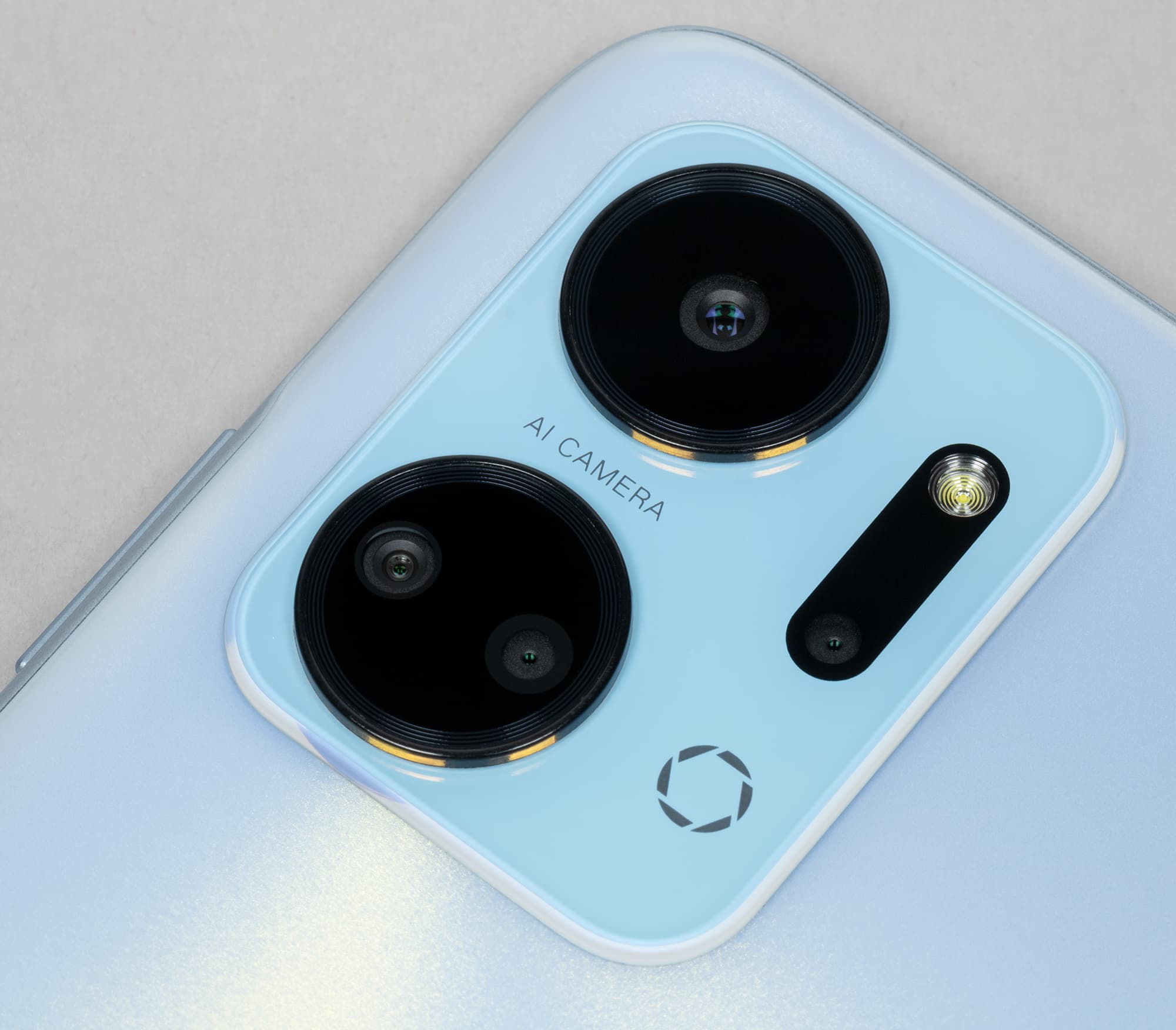 Honor X7a имеет четыре модуля для съемки сзади, но два из них — те самые «заглушки» по 2 Мп. А снимает смартфон лишь на две камеры: простенькую широкоугольную с разрешением 5 Мп и главную — с сенсором 50 Мп и объективом f/1,8. Автофокус есть только у основной камеры, стабилизатора нет ни у одной.