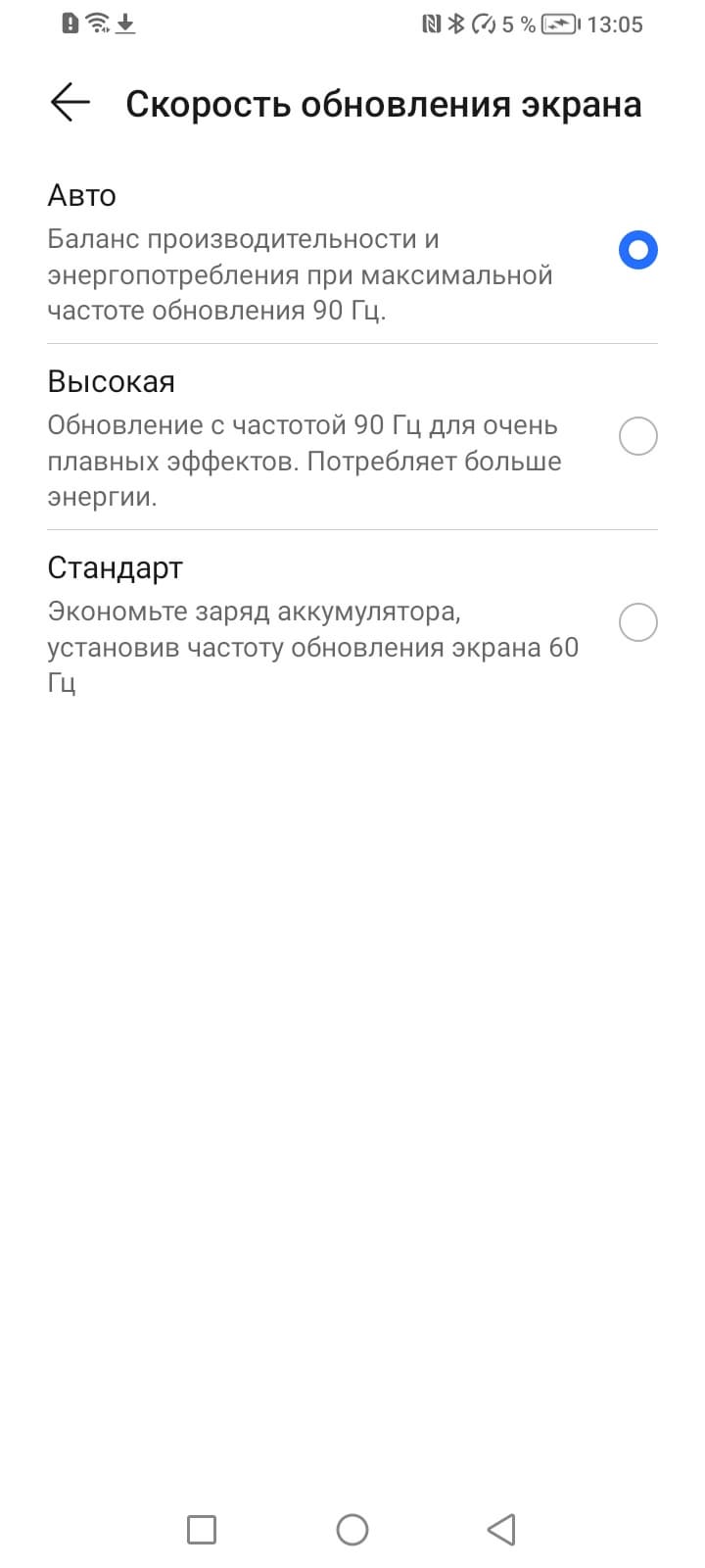 В настройках экрана можно включить режим с повышенной до 90 Гц частотой обновления, что приводит как минимум к увеличению плавности прокрутки списков в меню.