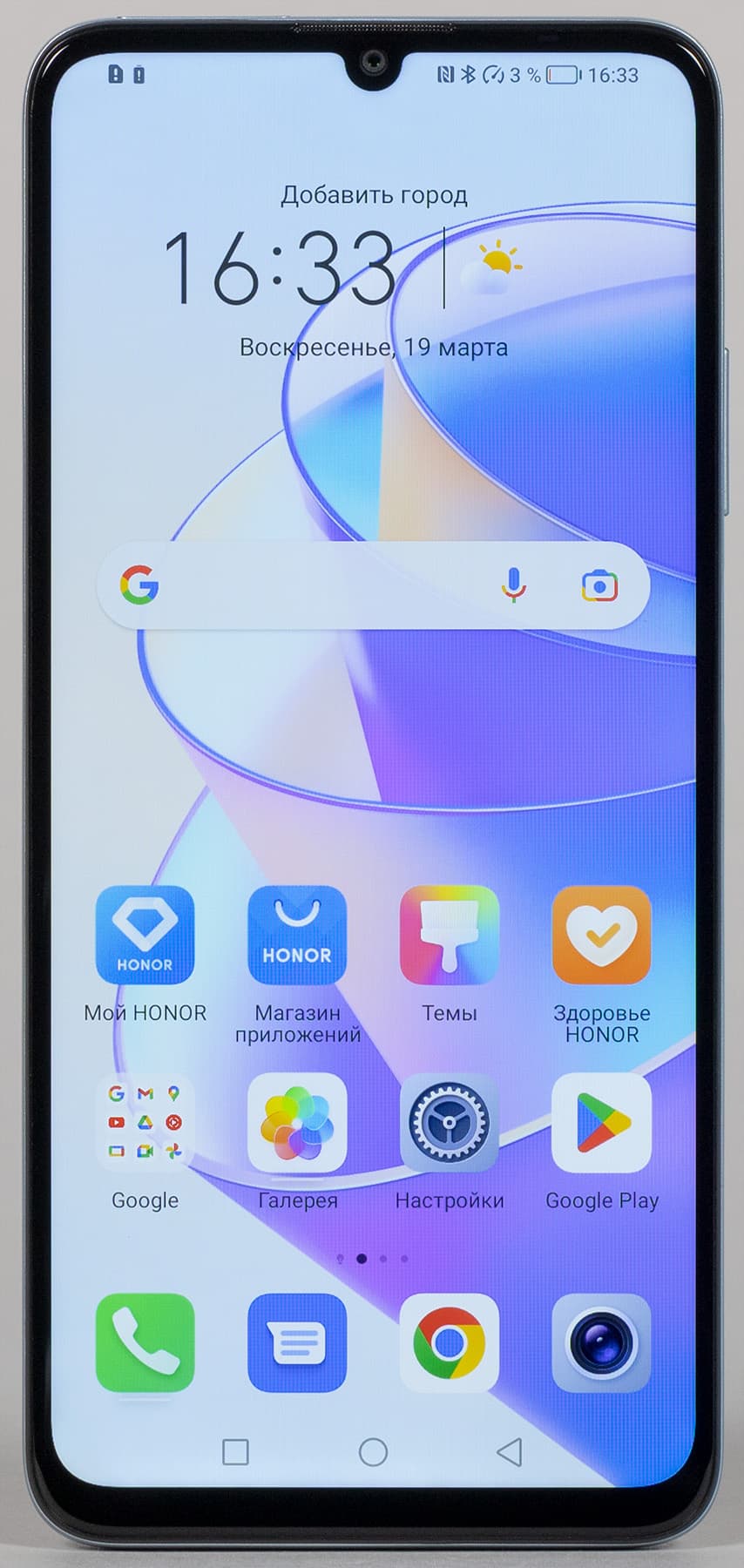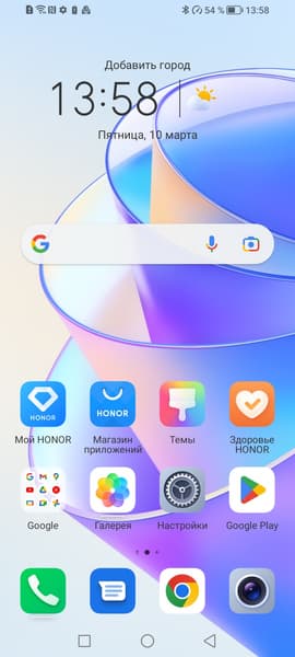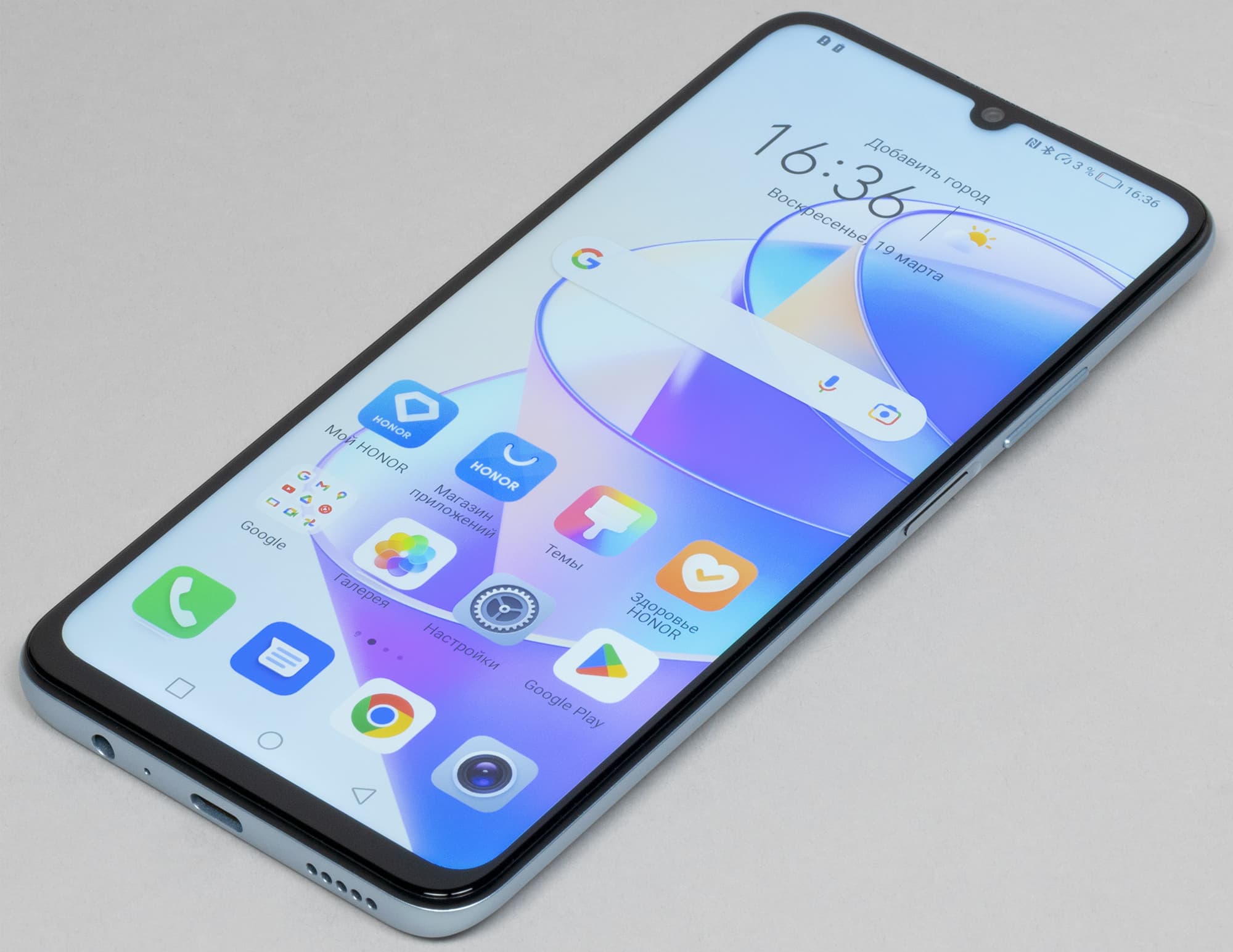 В качестве программной платформы Honor X7a, как и остальная троица новых моделей серии, использует свежую оболочку Magic UI 6.1 на основе ОС Android 12. Это добротный, отполированный интерфейс с осмысленной организацией, без излишней китайской перенасыщенности бесконечными настройками. Есть тут, конечно, ограничения, связанные с невысоким уровнем модели — например, меньшее количество режимов съемки у камеры. Но в целом, все основные возможности и режимы на месте. Имеется официальный доступ к магазину Google Play и сервисам Google. Шторка с уведомлениями и быстрыми настройками не разделяется на две части, она единая.