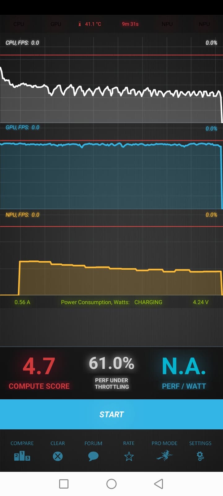 Тест на снижение производительности при нагреве мы проводим с помощью программы Burnout Benchmark, которая позволяет нагружать CPU, GPU и NPU: