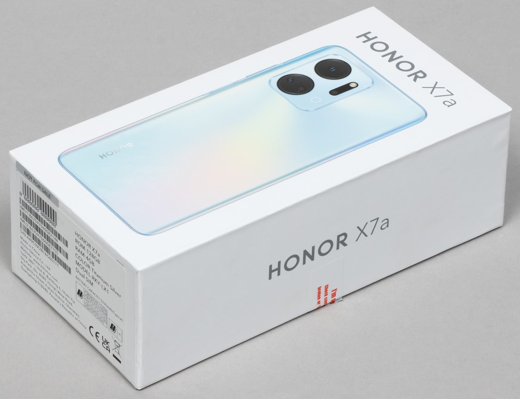 Honor X7a поставляется в твердой картонной упаковке с минималистичным оформлением и минимальным комплектом.