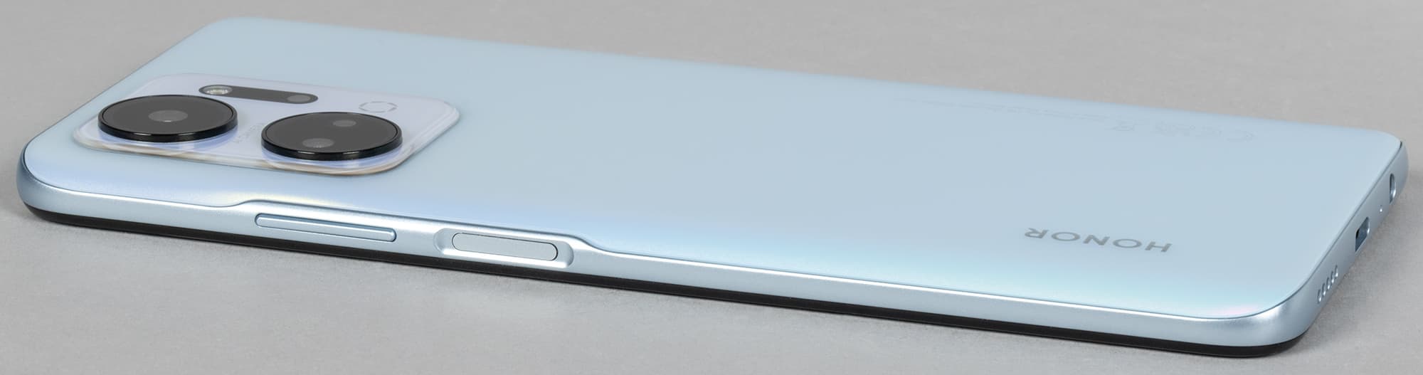 Все «три сестры» из новой серии выполнены в разных дизайнах. Honor X8a получил свежий актуальный дизайн с плоскими панелями и широкими боковинами, а вот младшая из трех моделей имеет корпус с обтекаемыми формами и сильно зауженными боковыми гранями, за которые даже трудно поднять смартфон со стола. Корпус выполнен в форме лодочки, и если эту лодочку положить на стол экраном вниз, то пальцам уже не за что будет уцепиться — они просто соскальзывают с этих загнутых боков.