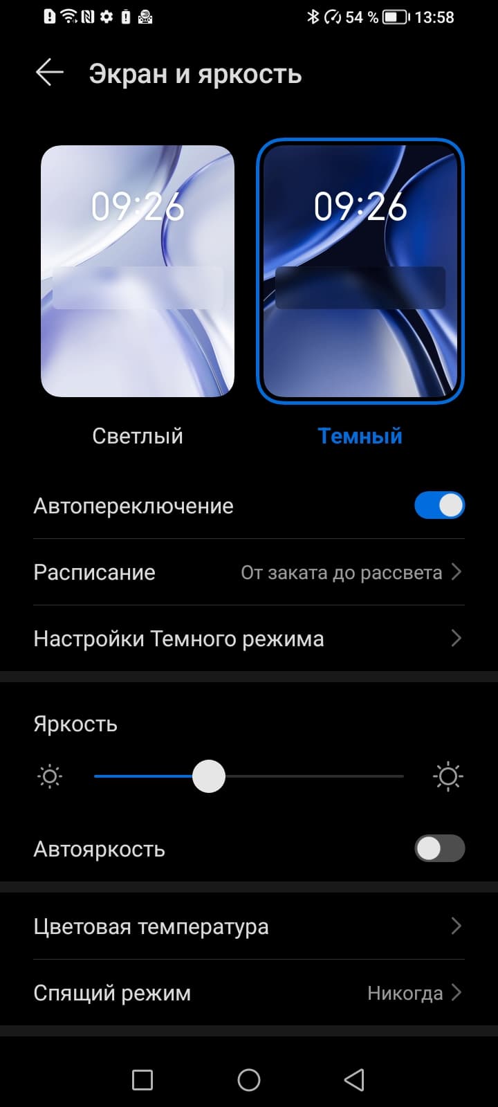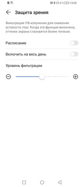 Присутствует уже традиционная настройка, позволяющая снизить интенсивность синей компоненты.