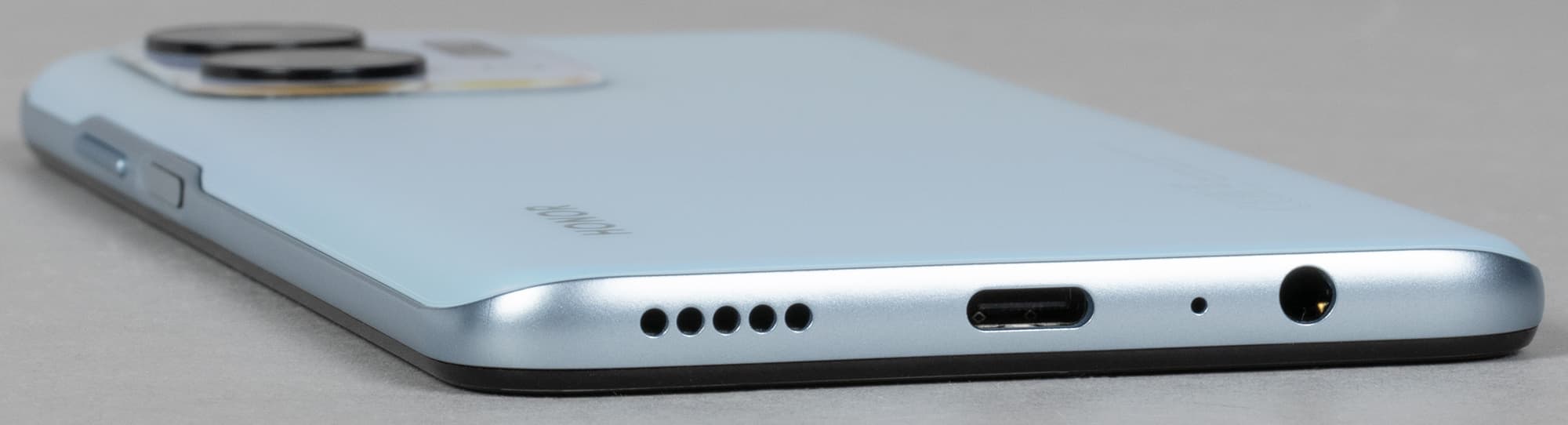 На нижнем торце размещены динамик, микрофон, разъем USB Type-C и 3,5-миллиметровый аудиовыход для наушников. Заметим, что разъем для миниджека проводных наушников получила лишь самая дешевая из троицы новых моделей, две другие (X8a и X9a) его лишены.