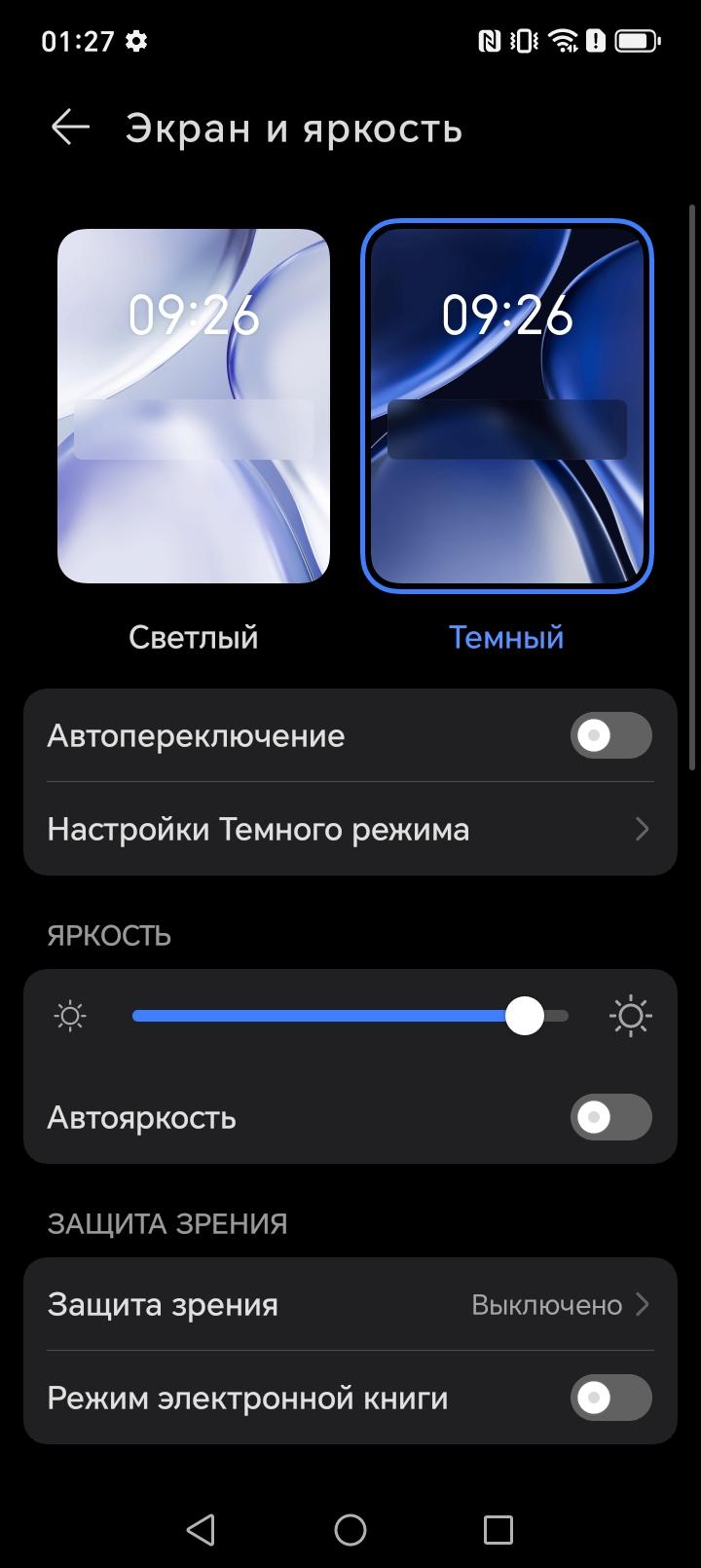 В настройках экрана можно включить режимы с повышенной до 120 Гц частотой обновления, притом в режиме Авто нам обещают автоматический выбор частоты: