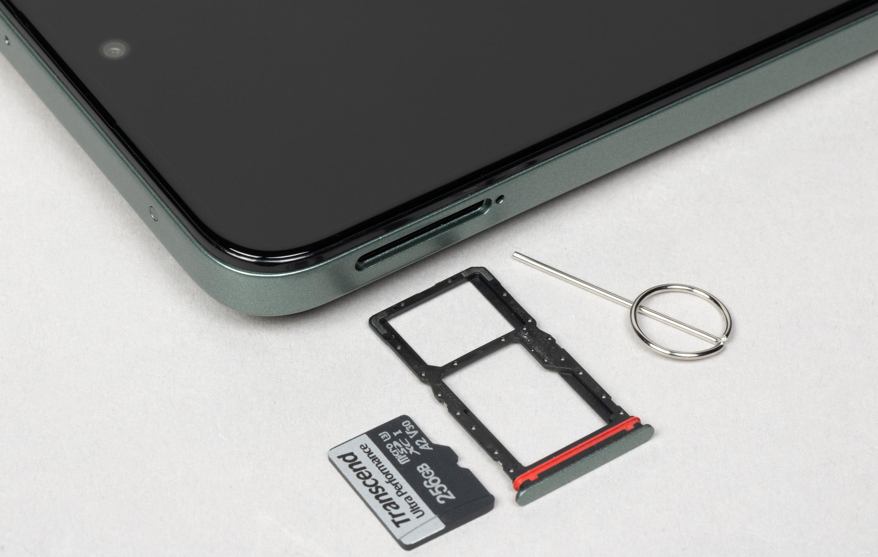 Выдвижной лоток совмещенный: в него можно установить две карты Nano-SIM либо поместить в один из слотов карту памяти microSD.