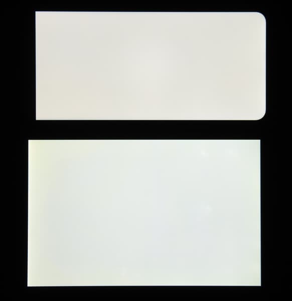 Экран смартфона имеет хорошие углы обзора без значительного сдвига цветов даже при больших отклонениях взгляда от перпендикуляра к экрану и без инвертирования оттенков. Однако черное поле при отклонении по диагонали сильно высветляется и приобретает фиолетовый оттенок.