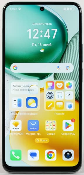 В качестве программной платформы в Honor X7c используется ОС Android 14 с собственной оболочкой MagicOS 8. По уверениям производителя, аппарат получит как минимум еще два крупных обновления системы, то есть дотянет до Android 16. Добротный интерфейс функционирует быстро, хорошо оптимизирован, лаконично организован. Оттягиваемая шторка здесь разделена на две части. Предустановленных ненужных приложений практически нет, что весьма похвально.