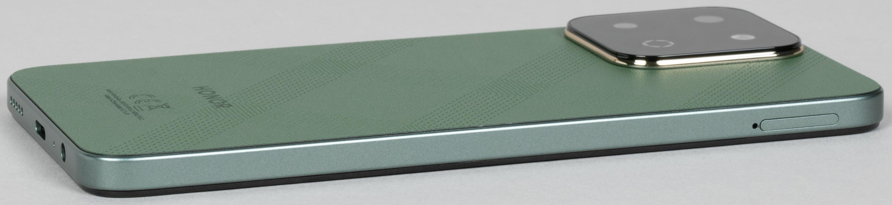 Смартфон Honor X7c представлен в нескольких цветовых решениях на выбор. Российские названия такие: «Лесной зеленый», «Полночный черный», «Лунный белый». От влаги и пыли корпус защищен по стандарту IP64. Первая цифра означает защиту от пыли, и с ней здесь всё хорошо, а вот цифра 4 означает лишь легкую защиту от брызг, погружать аппарат в воду не допускается. Смартфон получил прочный корпус, хорошо противостоящий внешним воздействиям.