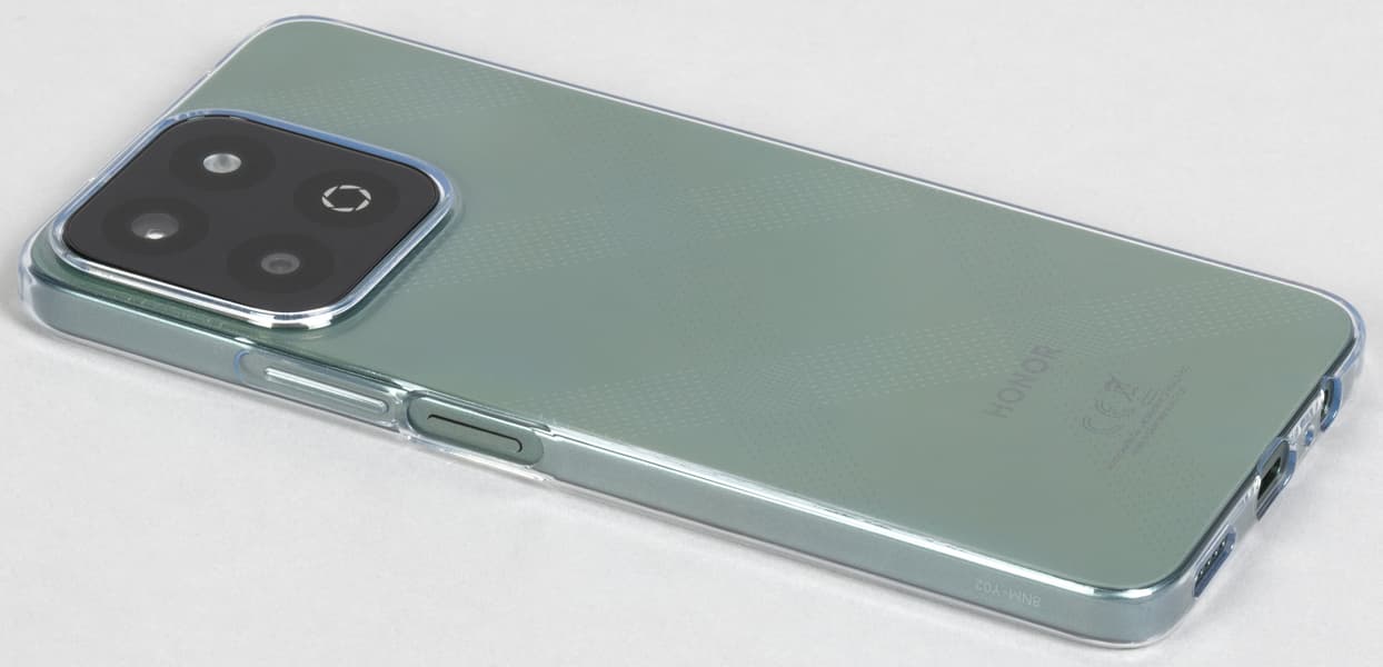 Honor X7c получил современный дизайн с актуальными прямыми формами. Здесь нет зауженных и обтекаемых элементов. Передняя и задняя панели плоские, боковые грани — тоже, переходы между ними отчетливые. Блок с камерами оформили не кругляшом, а квадратом, приподнятым над поверхностью задней стенки.