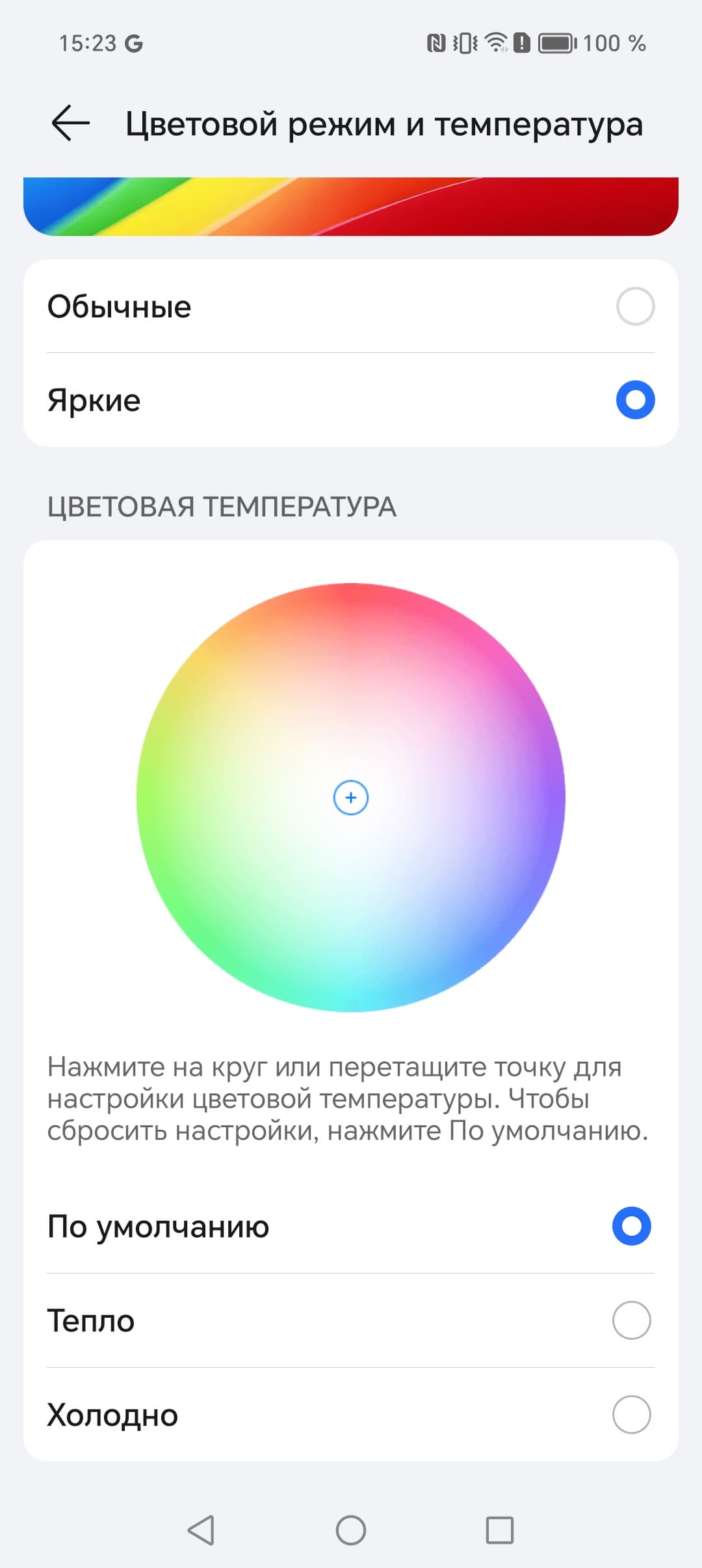 Фотография выше получена при активном профиле Обычные [цвета] в настройках экрана, всего их два:
