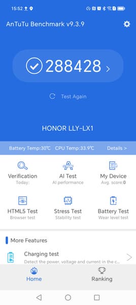 | AnTuTu (v9.x) (больше — лучше) | 288428 | 413792 | 602528 | 536193 | 397188 |