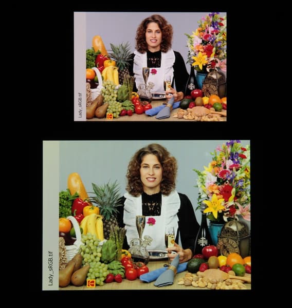 Отметим, что на экранах с уширенным цветовым охватом (без соответствующей коррекции) цвета́ обычных изображений, оптимизированных для устройств sRGB, выглядят неестественно насыщенными. Отсюда и рекомендация: в большинстве случаев смотреть кино, фотографии и все естественное лучше при выборе профиля Обычные.