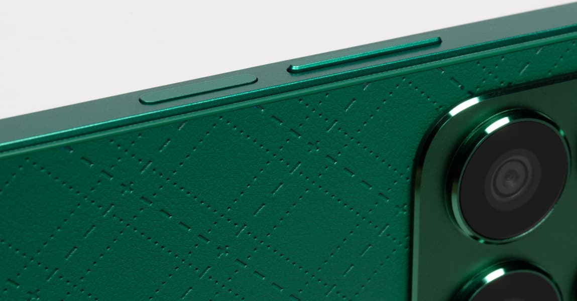 Смартфон смотрится стильно, аккуратно и дорого. По его внешности трудно определить ценовой уровень, аппарат может вписаться в любой образ. Впрочем, материалы здесь не премиальные: боковая рамка даже не металлическая, а пластиковая. Задняя панель может быть выполнена либо из твердого матового шероховатого пластика, либо, в случае зеленого варианта, из экокожи. Этот материал максимально не маркий, на нем не видны отпечатки пальцев. Да и в руках он не скользит.