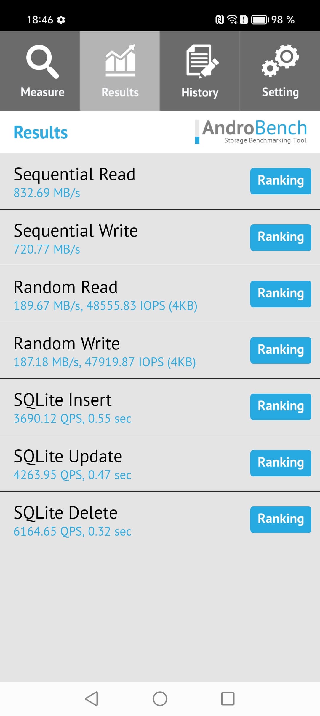 Результаты теста AndroBench на скорость работы с памятью: