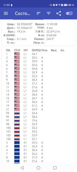 - GPS, Глонасс, BDS, Galileo и QZSS