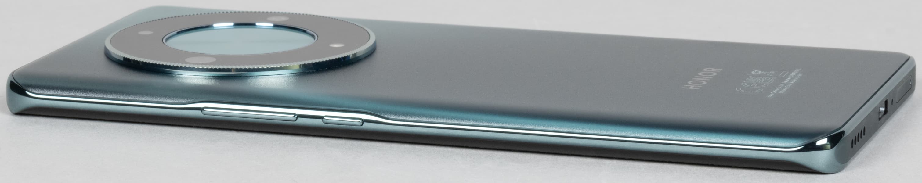 Смартфон Honor X9b выпускается в черном, зеленом и оранжевом вариантах оформления. Последний вариант имеет покрытие задней стенки из экокожи и боковую рамку золотистого цвета. Заявленная защита на уровне IP53 означает, что корпус не боится пыли (точнее, пыль может попасть в устройство, но не повредит ему) и брызг, падающих вертикально или под углом до 60 градусов.