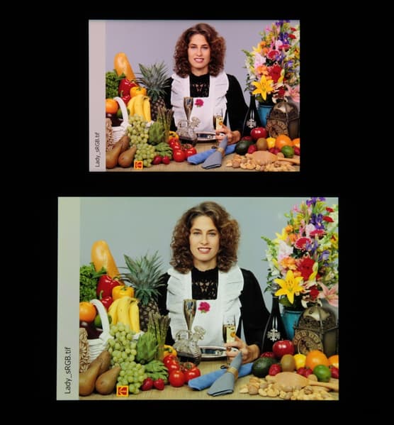 Отметим, что на экранах с уширенным цветовым охватом (без соответствующей коррекции) цвета́ обычных изображений, оптимизированных для устройств sRGB, выглядят неестественно насыщенными. Отсюда и рекомендация: в большинстве случаев смотреть кино, фотографии и все естественное лучше при выборе профиля Обычные.