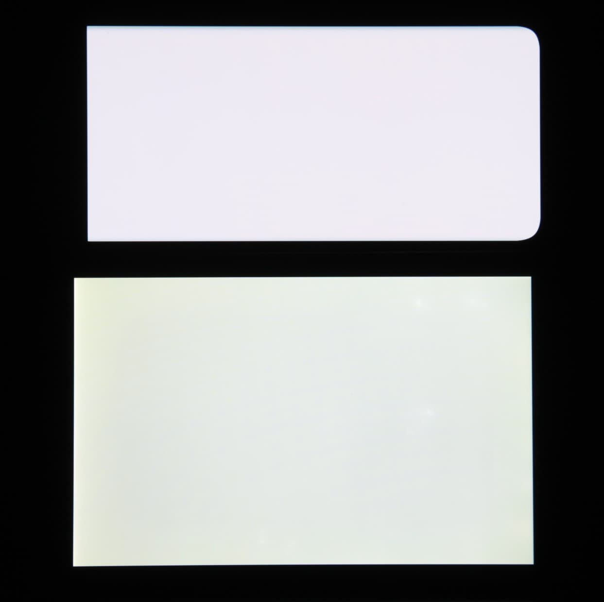 Цветопередача хорошая, цвета в меру насыщенные, цветовой баланс у экранов немного различается. Напомним, что фотография не может служить надежным источником сведений о качестве цветопередачи и приводится только для условной наглядной иллюстрации. В частности, выраженный красноватый оттенок белого и серого полей, присутствующий на фотографиях экрана смартфона, при перпендикулярном взгляде визуально отсутствует, что подтверждается аппаратными тестами с помощью спектрофотометра. Причина в том, что спектральная чувствительность матрицы фотоаппарата неточно совпадает с этой характеристикой человеческого зрения.
