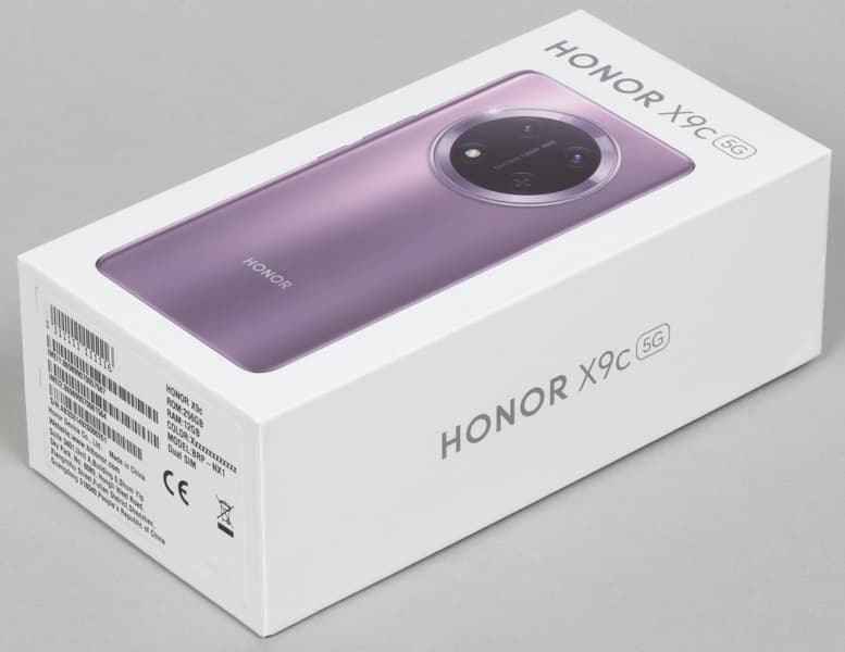 Смартфон Honor X9c поставляется в стандартной картонной коробке со спокойным оформлением.