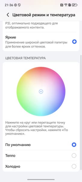 Фотография выше получена при активном профиле Обычные [цвета] в настройках экрана, всего их два: