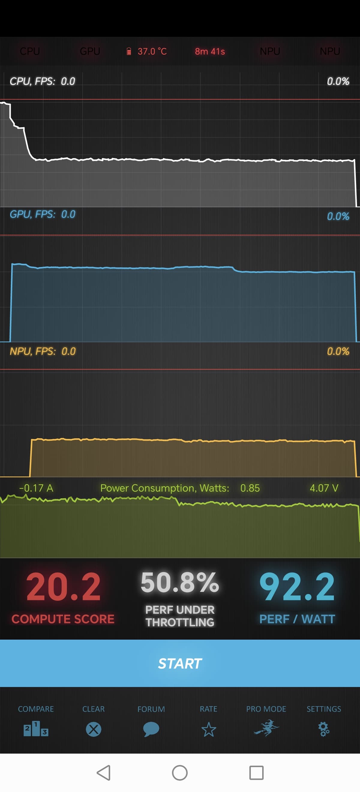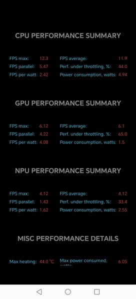 Тест на снижение производительности при нагреве мы проводим с помощью программы Burnout Benchmark, которая позволяет нагружать CPU, GPU и NPU. Уровень тротлинга при нагрузке на GPU (то бишь в играх) средний.