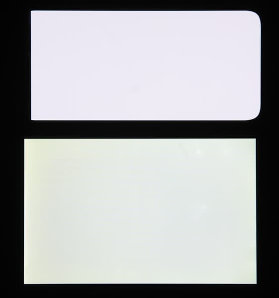 Цветопередача хорошая, цвета в меру насыщенные, цветовой баланс у экранов немного различается. Напомним, что фотография не может служить надежным источником сведений о качестве цветопередачи и приводится только для условной наглядной иллюстрации. В частности, выраженный красноватый оттенок белого и серого полей, присутствующий на фотографиях экрана смартфона, при перпендикулярном взгляде визуально отсутствует, что подтверждается аппаратными тестами с помощью спектрофотометра. Причина в том, что спектральная чувствительность матрицы фотоаппарата неточно совпадает с этой характеристикой человеческого зрения.