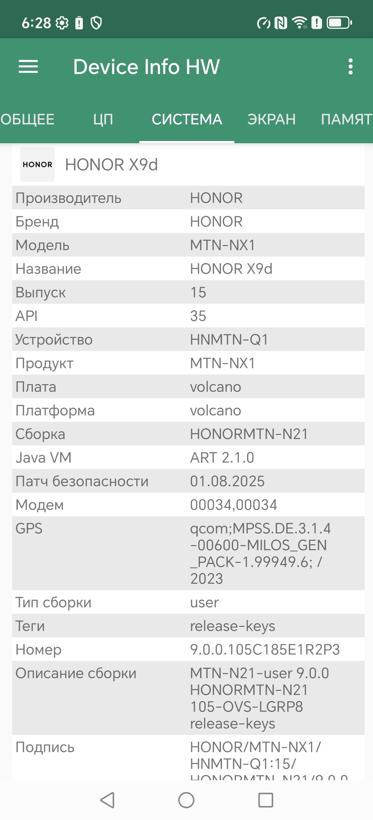 Основные характеристики Honor X9d (модель MTN-NX1)