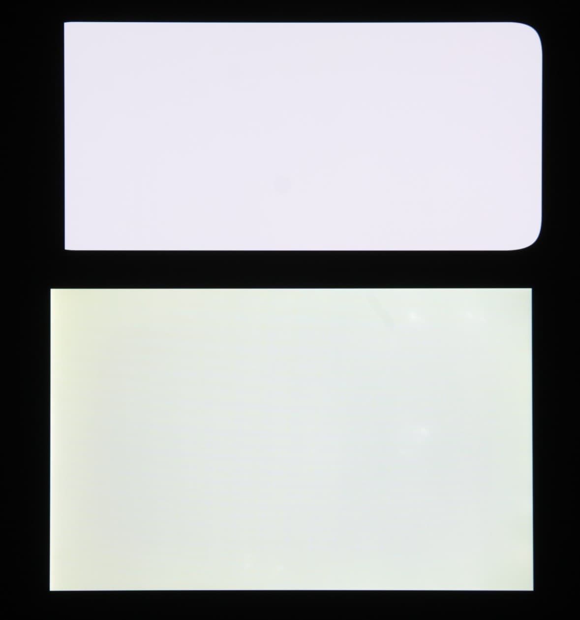 Экран характеризуется великолепными углами обзора. Яркость под углом у обоих экранов заметно уменьшается (если сравнивать с Nexus 7), но в случае смартфона падение яркости выражено гораздо меньше. В итоге, даже если установить формально одинаковую яркость, то экран этого смартфона визуально выглядит гораздо более ярким (в сравнении с ЖК-экранами), так как на экран мобильного устройства часто приходится смотреть как минимум под небольшим углом. Правда, у смартфона белый цвет при отклонении на большие углы приобретает легкий сине-зеленый оттенок, но черный цвет остается просто черным под любыми углами. Он настолько черный, что параметр контрастности в данном случае неприменим. Для сравнения приведем фотографии, на которых на экраны смартфона и второго участника сравнения выведены одинаковые изображения, при этом яркость экранов изначально установлена примерно на 200 кд/м², а цветовой баланс на фотоаппарате принудительно переключен на 6500 К.