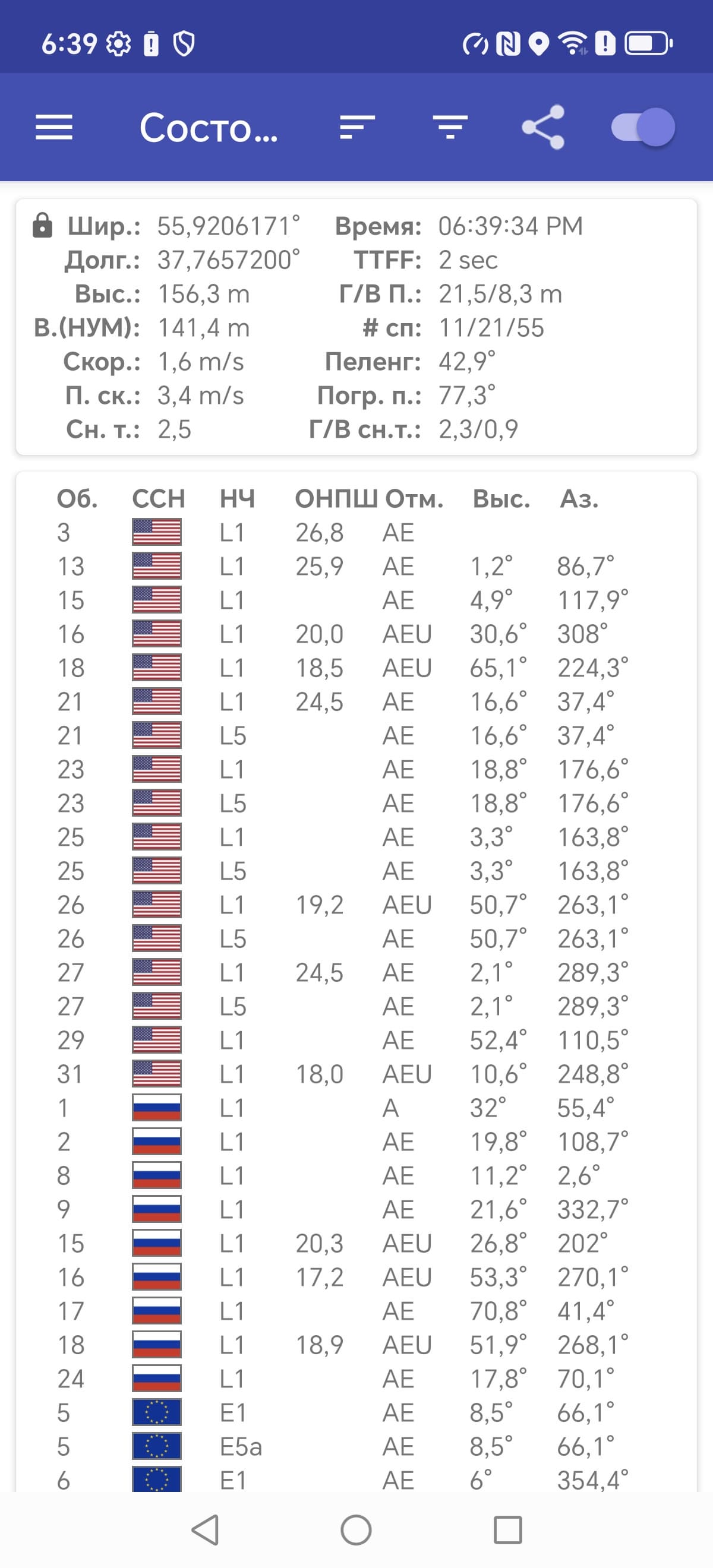 - GPS, Galileo, Глонасс, QZSS, BDS