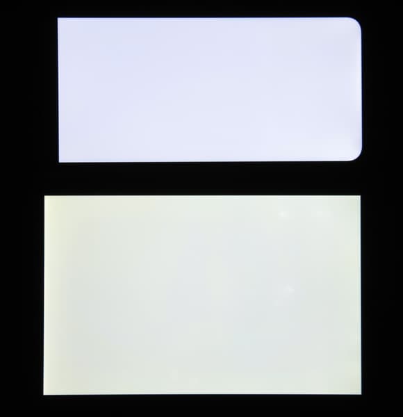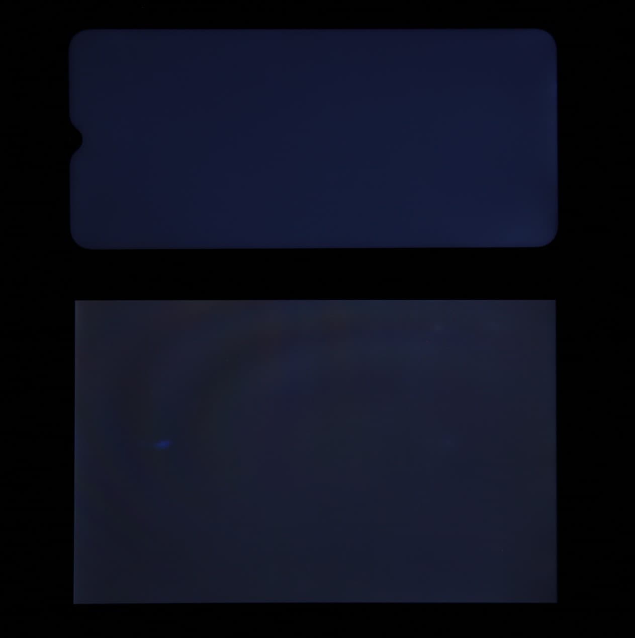 При перпендикулярном взгляде равномерность черного поля хорошая (для наглядности яркость подсветки на смартфоне увеличена):