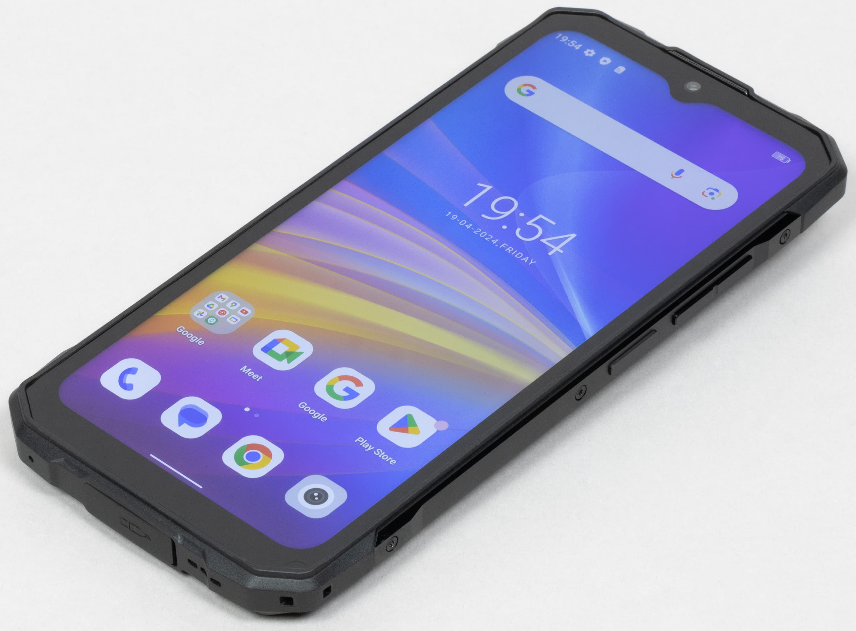 Защищенный по по стандартам IP68 и IP69K, а также военному стандарту MIL-STD-810H, корпус имеет надежную защиту от воды, пыли и ударов благодаря толстым резиновым накладкам, укрепленным углам и металлическим пластинам, прикрученным по бокам. Задняя стенка шероховатая, тоже с прорезиненным эффектом. Она украшена стильной полосой, выглядит аккуратно, без аляповатости и разноцветия. В целом смартфон смотрится очень достойно. Переднее стекло плоское, это Corning Gorilla Glass 3.