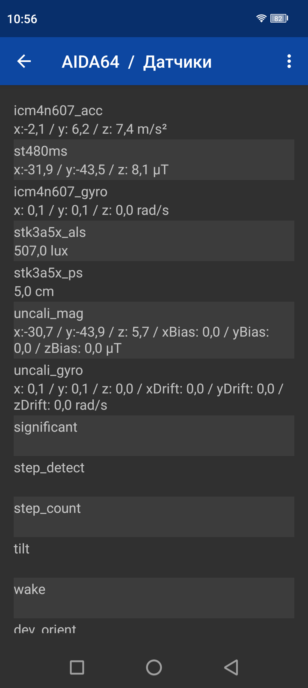 - Датчики приближения и освещения, магнитного поля, акселерометр, гироскоп