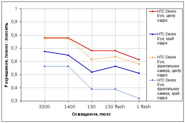 Судя по тестам, обе камеры имеют практически одинаковые сенсоры, но разную оптику и особенно программное обеспечение. К сожалению, в тыловой камере тестируемого образца присутствовал заводской брак — перекос «фокусировочной» линзы, из-за которого плоскость фокусировки не была перпендикулярна оптической оси, что особенно заметно на снимках стенда. В остальном она не так уж плоха, хотя при таком разрешении могла бы обеспечивать лучшую резкость. Впрочем, следует сделать скидку на не самое дневное время съемки основного набора фотографий.