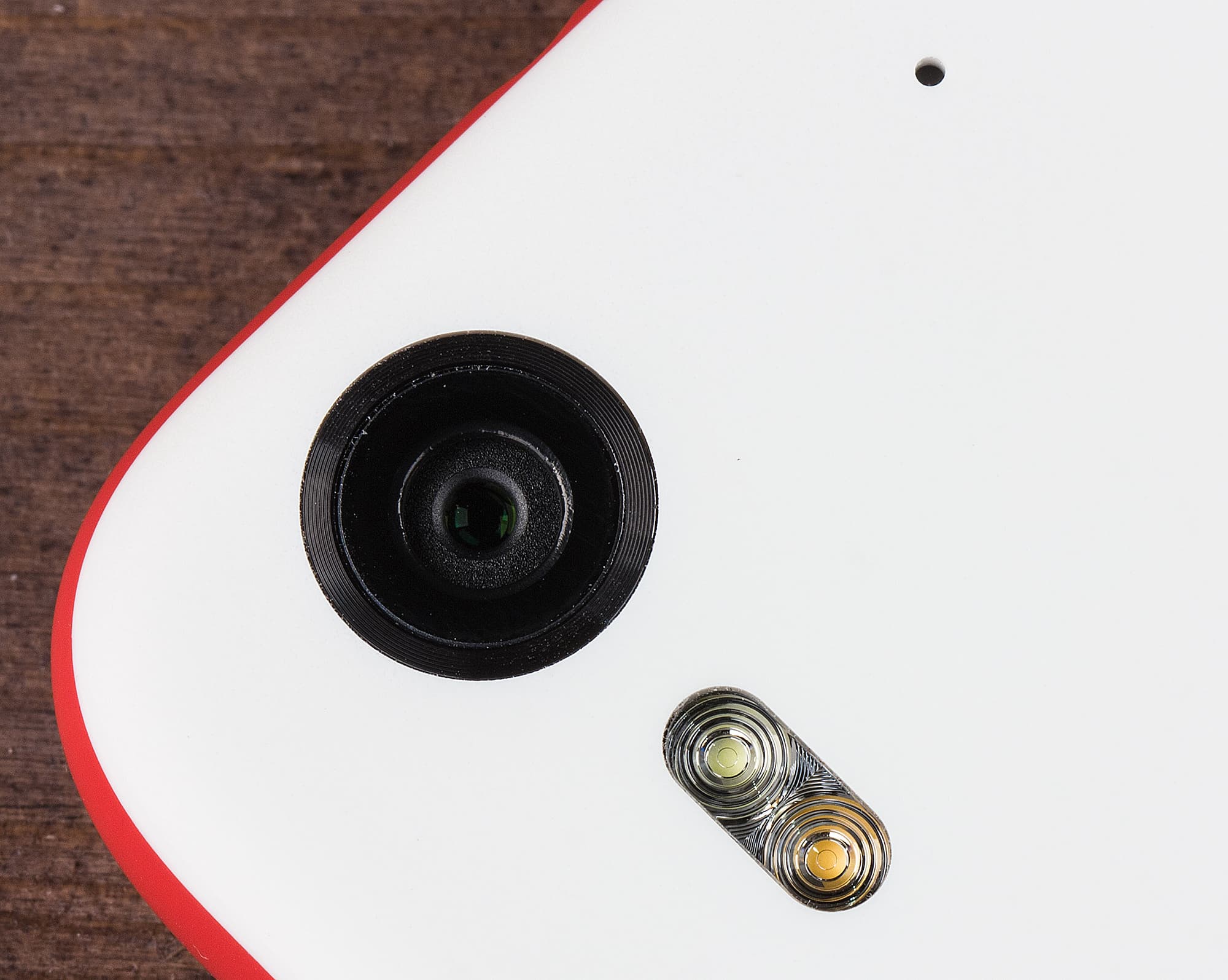 На тыльной стороне, соответственно, никаких решеток для выхода звука нет, на всей поверхности можно найти только круглый глазок камеры с соседствующей сдвоенной разноцветной светодиодной вспышкой. Вспышку можно задействовать в качестве фонарика с помощью специальной предустановленной программы.