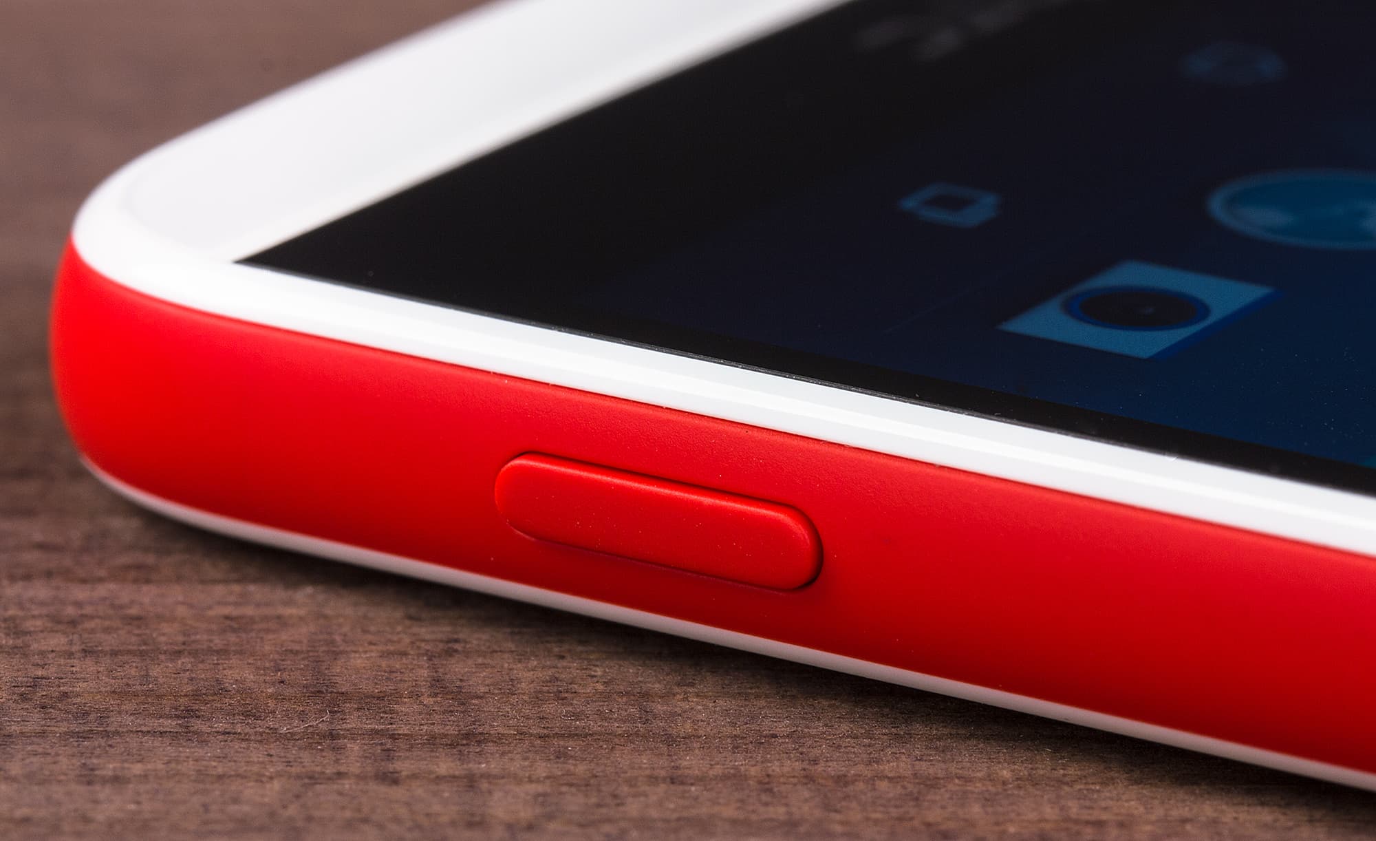 На противоположной от заглушек грани (правой) расположились все механические клавиши устройства: первой идет сдвоенная качелька регулировки громкости, за ней — кнопка питания и блокировки, а самая нижняя клавиша отвечает за работу с камерой. Отдельная фотокнопка выглядит атавизмом, хотя возможность более быстрого запуска камеры, а также съмки под водой, когда экран становится нечувствительным к прикосновениям, отчасти оправдывают здесь ее наличие. Кнопки пластмассовые, крупные, имеют глубокий ход, но слишком мягкий и податливый отклик — механические элементы можно было бы сделать и пожестче.