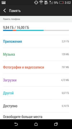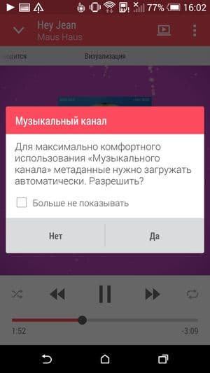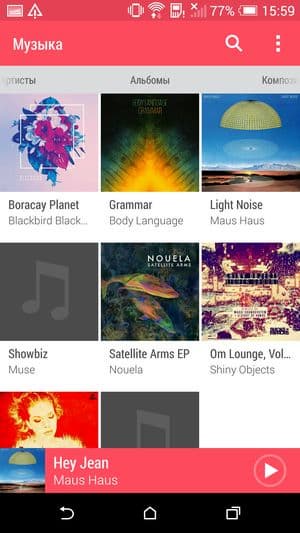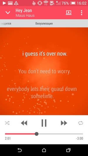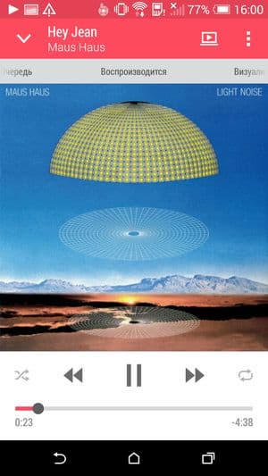 Для проигрывания музыкальных композиций в аппарате используется собственный фирменный плеер НТС Музыка. Все звуковые эффекты объединены технологией BoomSound и отданы на откуп автоматике — вручную настроить практически ничего нельзя. В настройках имеется лишь возможность отключить функцию улучшения звука BoomSound, и то на работу встроенных динамиков это никак не влияет.