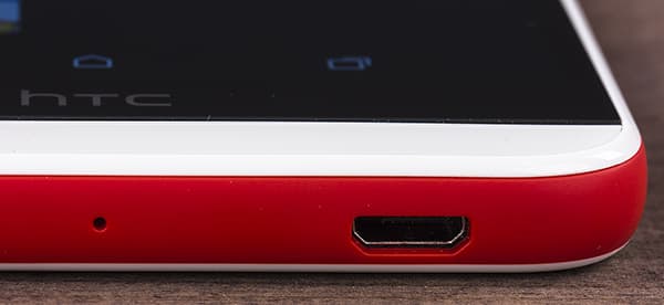 В отличие от металлических флагманских смартфонов HTC One, новинка серии Desire получила пластиковый корпус, как и большинство предыдущих моделей семейства. Смартфон выполнен в этаком спортивном стиле, по боковому периметру пущена широкая яркая полоса отличного от остального корпуса цвета. В случае с белым вариантом окраса все грани оказываются красными, а серый корпус обрамляет полоса темного-синего цвета. Это не краска: корпус выполнен из сплавов поликарбоната разных цветов методом бесшовного литья, так что переходов между слоями пластика не нащупать.