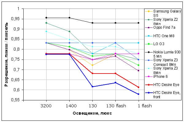 Видимо, в погоне за современным потребителем в HTC решили переплюнуть китайцев и установили в смартфон 13-мегапиксельный модуль фронтальной камеры. Гонка «в тылах» слегка поутихла, и борьба перекинулась на «передовую». Можно бесконечно рассуждать о целесообразности данного шага, но, думается, горы «себяшек» в сети вынуждают производителей потакать желаниям клиента — вернее, стараться всеми силами угодить ему. Предназначение 13 Мп у фронтальной камеры не вызывает сомнений — они здесь явно не для видеозвонков. Тем не менее, обе камеры мы протестировали по нашей стандартной методике, которая для фронтальной является заведомо оторванной от реальности (сферы применения), однако позволяет оценить качество камеры.