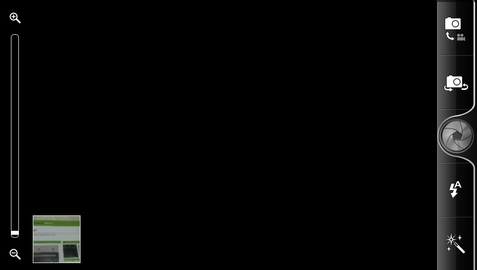 В общем, какие-либо специальные настройки для съёмки в стереорежиме в программе отсутствуют. Собственно, единственная настройка — переключатель режимов 2D/3D — представлена в виде отдельного элемента управления — ползунка, расположенного рядом с кнопкой управления камерой. Кроме как на режим съёмки штатной стереокамерой он ни на что более не влияет — коммуникатор всегда работает в режиме 3D, но стереокартинка появляется лишь при условии поддержки такого режима со стороны программы.