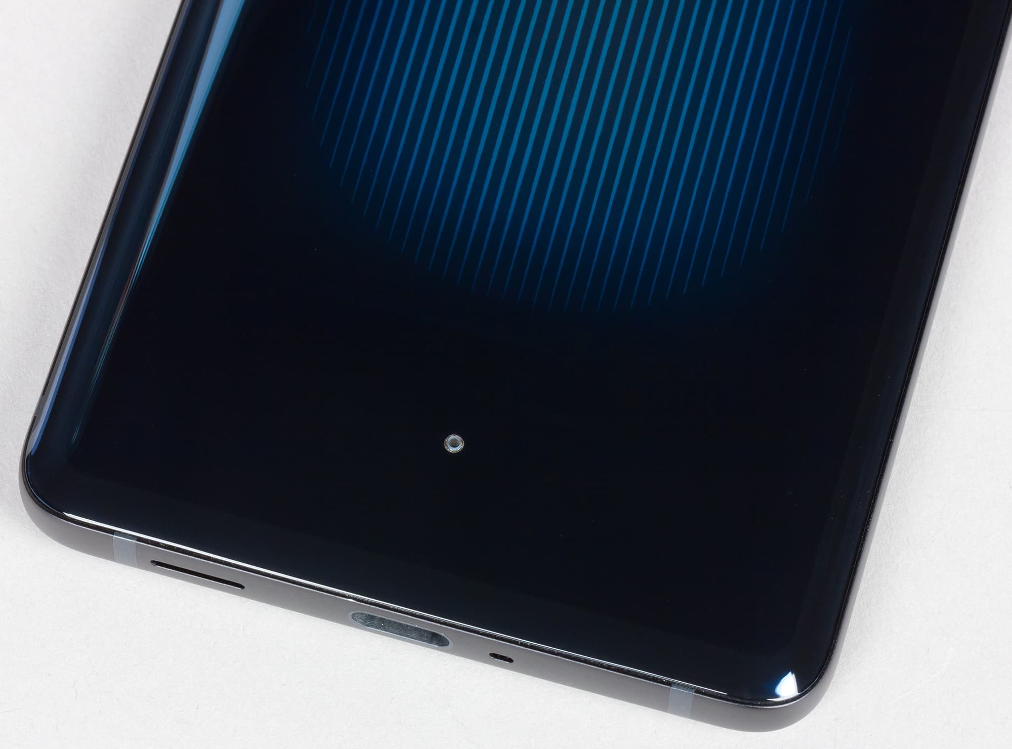 Основной динамик выведен в нижний торец, там же располагаются отверстие разговорного микрофона и разъем USB Type-C. И раз мы видим USB Type-C, нетрудно догадаться, что 3,5-миллиметровый аудиовыход на наушники в смартфоне отсутствует.