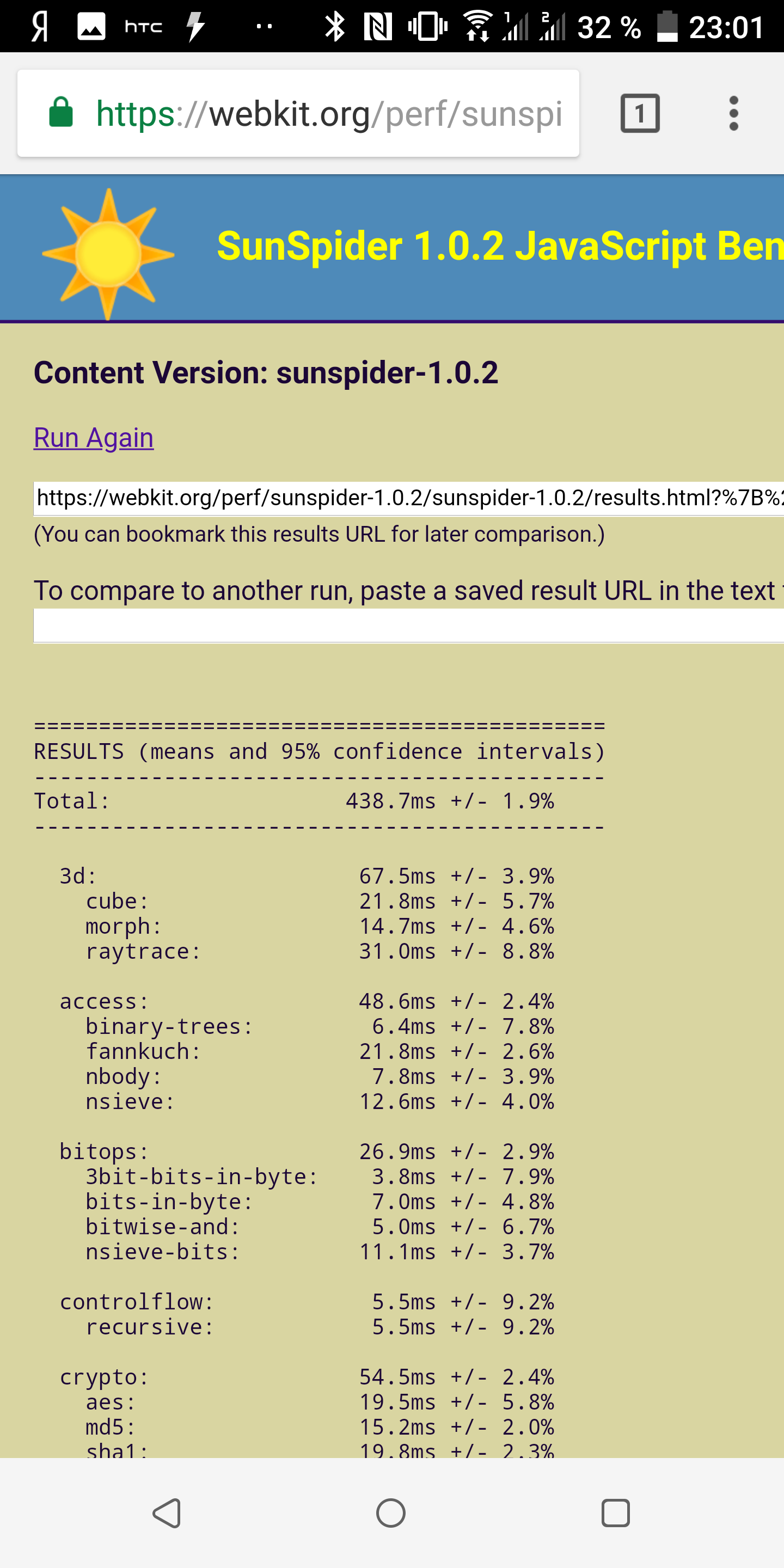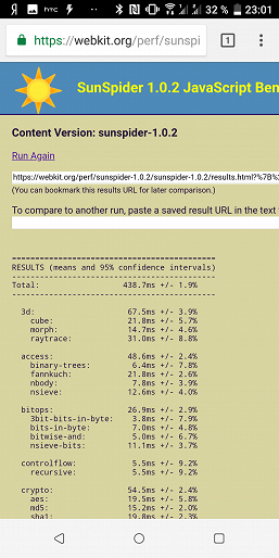Что касается бенчмарков для оценки скорости движка javascript, то стоит всегда делать скидку на то, что в них результаты существенно зависят от браузера, в котором запускаются, так что сравнение может быть истинно корректным только на одинаковых ОС и браузерах, а такая возможность имеется при тестировании не всегда. В случае с ОС Android мы всегда стараемся использовать Google Chrome.