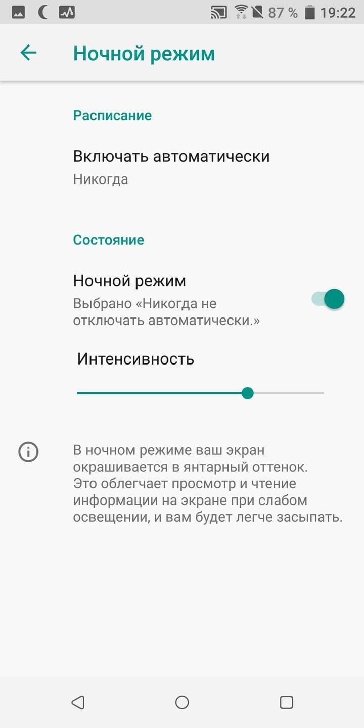 Присутствует модная настройка, позволяющая снизить интенсивность синей компоненты.
