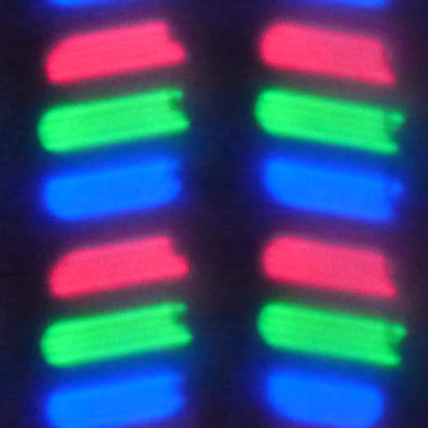 В данном смартфоне используется матрица типа IPS. Микрофотографии демонстрируют типичную для IPS структуру субпикселей: