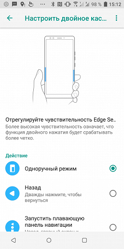 Четко и безошибочно работает в смартфоне функция распознавания владельца по лицу, неудачных попыток практически не было даже в помещениях с плохим освещением. Есть функция AlwaysOn Display, а поднесенный к лицу экран после показа основной информации в монохромном отображении затем еще и разблокируется, самостоятельно переходя к основному рабочему экрану. Также расширены возможности панели кнопок: ее можно пролистнуть вбок для открытия иных возможностей, в том числе и для снятия скриншотов (это весьма актуально, поскольку привычный способ одновременного нажатия клавиш питания и уменьшения громкости тут не работает).